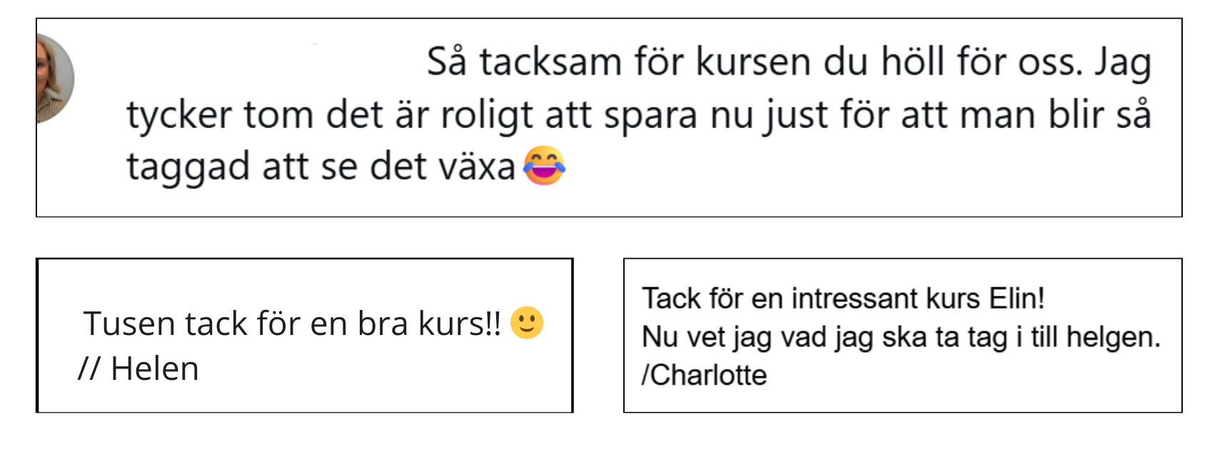 • Privat facebookgrupp för deltagare med möjlighet att ställa frågor till mig. Jag peppar er framåt och ni firar era vinster (värde: 1995 kr)